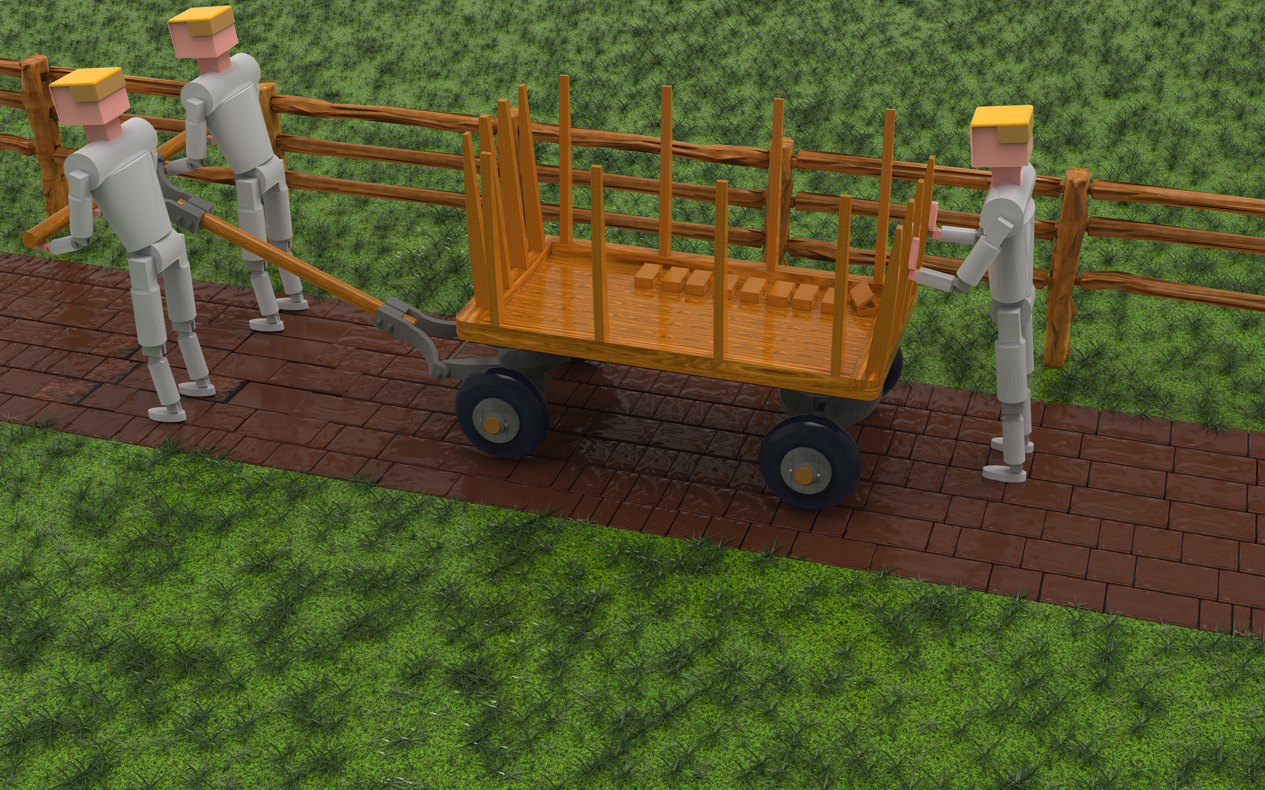 Fence Grass Bricks Wagon And Manikins Wooden Box V17 Bip 674
